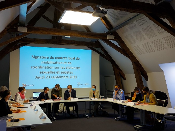Crée le 27 septembre 2021Jeudi 23 septembre a eu lieu la Signature du Contrat Local de Mobilisation et de Coordination sur les violences sexuelles et sexistes de la ville de BAYEUX.