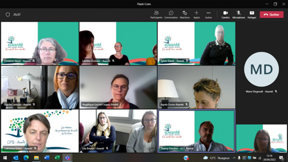Crée le 29 avril 2022Angéline Lecourt, nouvelle administratrice du GCS Axanté, a eu l'occasion de rencontrer (virtuellement) les équipes du GCS lors de notre réunion périodique de communication le 28 avril dernier.