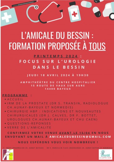 Crée le 16 avril 2024L'amicale du Bessin propose une formation : "focus sur l'urologie dans le bessin", le :