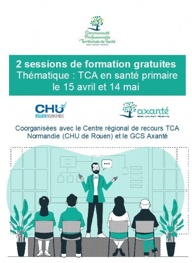 Crée le 17 avril 2024Le Centre régional de recours TCA Normandie (CHU de Rouen) et le GCS Axanté coorganisent une session de formation gratuite le 14 mai 2024 de 14 h à 17 h, amphithéâtre du Centre hospitalier 15 Rte de Vaux-sur-Aure, 14400 Bayeux