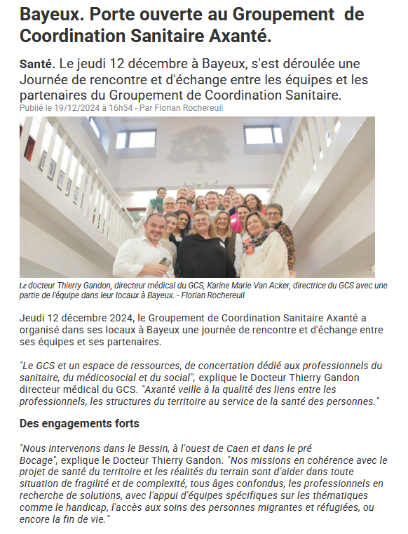 Crée le 06 janvier 2025Le 12 Décembre 2024, Le GCS a ouvert ces portes à l'ensemble de ces collaborateurs.